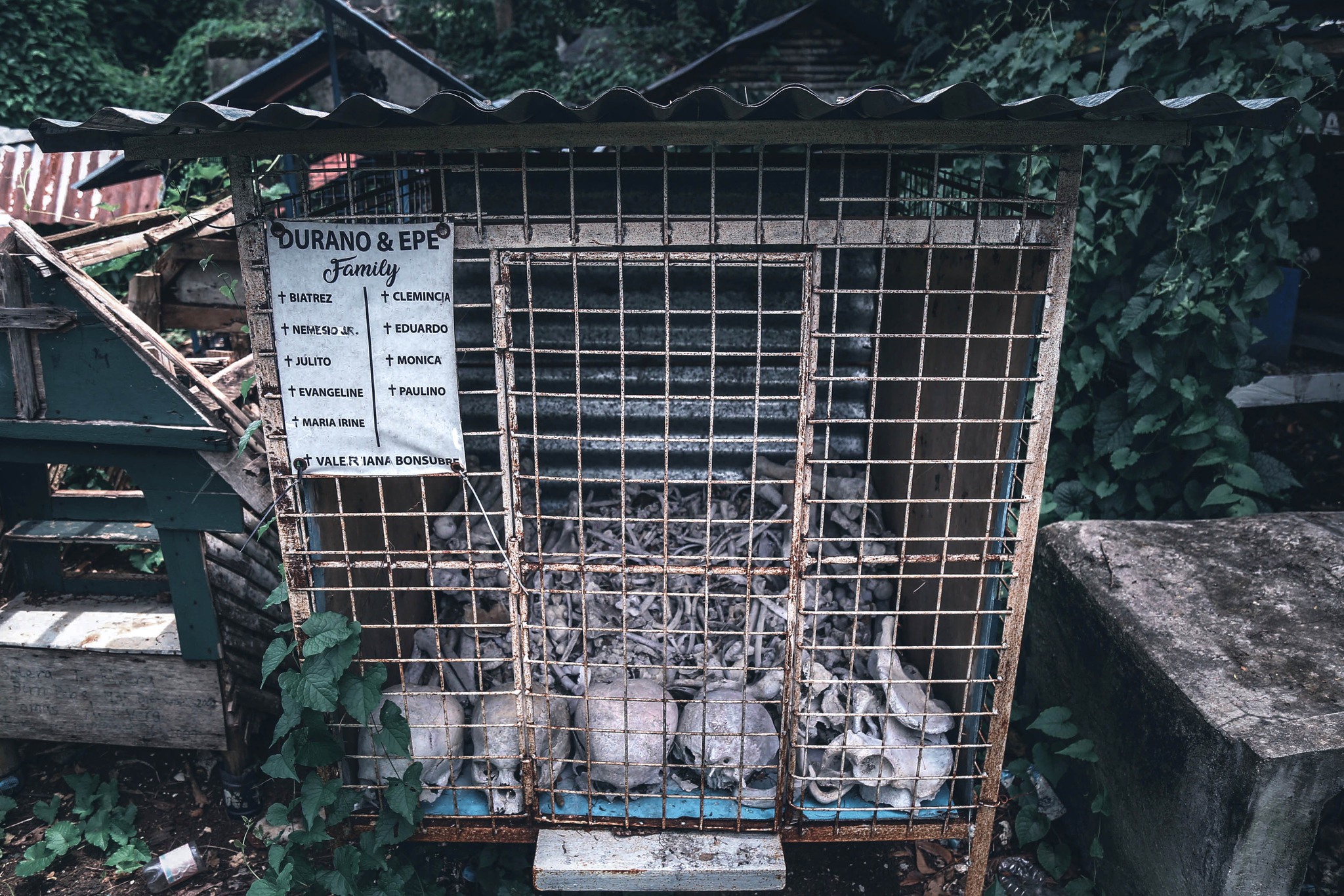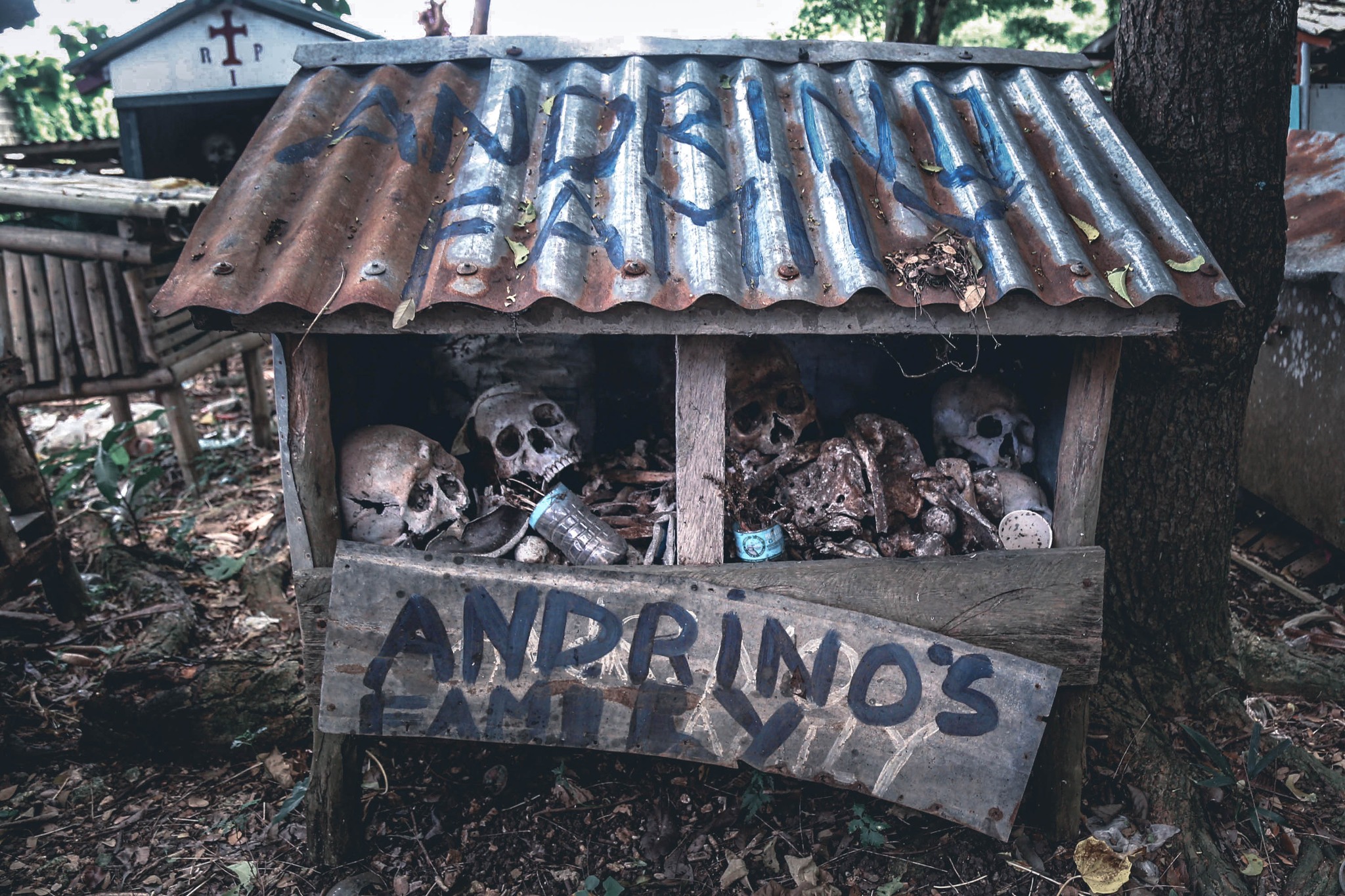 Many of these small shelters hold the remains of several family members, their skulls and bones arranged side by side, showing how family ties endure even after death. The sight of exposed bones within these shelters is not seen as morbid but as part of the community’s practice of remembrance and respect for the dead.